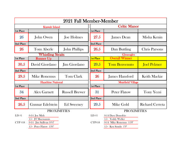2021 Fall Member Member Results